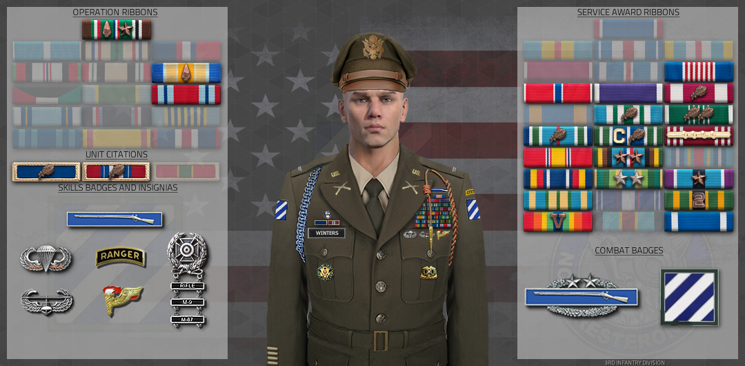 European Campaign (ECM) First Lieutenant Chris Winters The Secretary of the Army has reposed special trust and confidence in your patriotism, valor, fidelity and professional excellence. In view of these qualities, your demonstrated leadership potential, and dedicated service to the United States Army and the unit, you are, therefore, awarded the European Campaign (ECM). Awarded: Jan 5, 2025 Signed: Major John LaFlash |