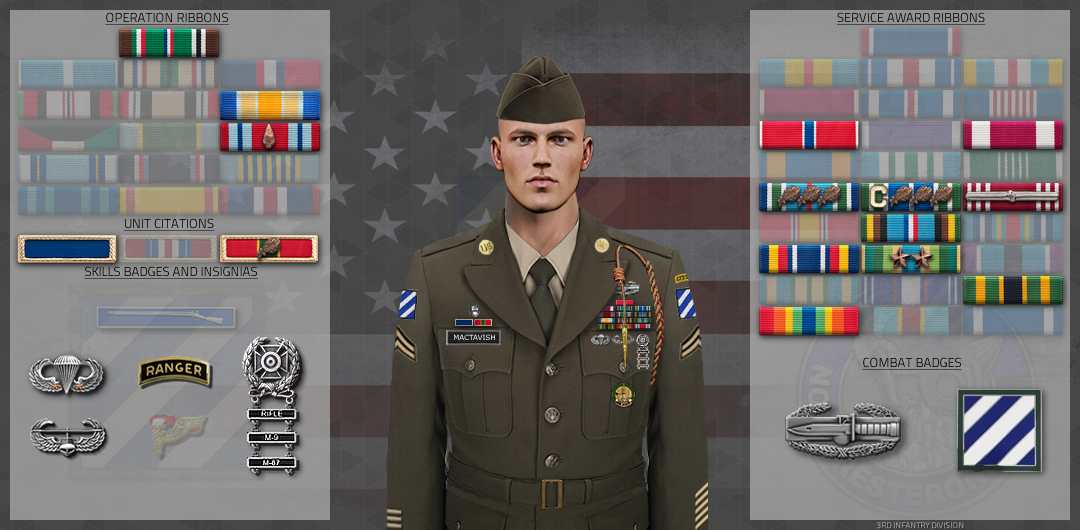Bronze Star (BSM) Corporal Pacino MacTavish The Secretary of the Army has reposed special trust and confidence in your patriotism, valor, fidelity and professional excellence. In view of these qualities, your demonstrated leadership potential, and dedicated service to the United States Army and the unit, you are, therefore, awarded the Bronze Star (BSM). Awarded: Jan 4, 2026 Signed: Major John LaFlash