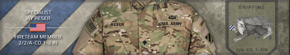 Combat Star Specialist Jay Reser The Secretary of the Army has reposed special trust and confidence in your patriotism, valor, fidelity and professional excellence. In view of these qualities, your demonstrated leadership potential, and dedicated service to the United States Army and the unit, you are, therefore, awarded the Combat Star. Awarded: Sep 7, 2025 Signed: Major John LaFlash |