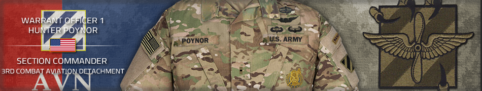 In Mission Crete, Ghosts was tasked by 2LT Byrd to assist 2nd Platoon with their MASCAS, and move them to the established 1st Platoon CCP. During this, SGT Poynor sustained critical injuries, including three broken limbs and major bleeding, along with all but one soldier going down. Despite his injuries, and the intense firefight still going on around him, he managed to carry all wounded 2nd squad soldiers to the temporary CCP he had established. Then leaving SGT Schneider to care for the wounded, he went back into the fighting and utilizing all of his ammo, managed to carry back all wounded members of 4th Squad to the temporary CCP. Only then, with enough members to carry the rest of the wounded now up, ordered all available soldiers to carry all of the wounded to the established 1st Platoon CCP to regroup with the rest of the Company. Now severely wounded and unable to move, SGT Poynor had SPC Magretson carry him while tending to his wounds and picked up duties as acting SL. For his selfless service and by saving his team, he is deserving of this purple heart.