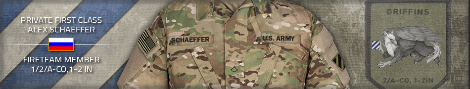 Army Service Ribbon (ASR) medal with Valor "V" Device. Private First Class Alex Schaeffer The Secretary of the Army has reposed special trust and confidence in your patriotism, valor, fidelity and professional excellence. In view of these qualities, your demonstrated leadership potential, and dedicated service to the United States Army and the unit, you are, therefore, awarded the Army Service Ribbon (ASR). Awarded: Dec 6, 2025 Signed: Major John LaFlash