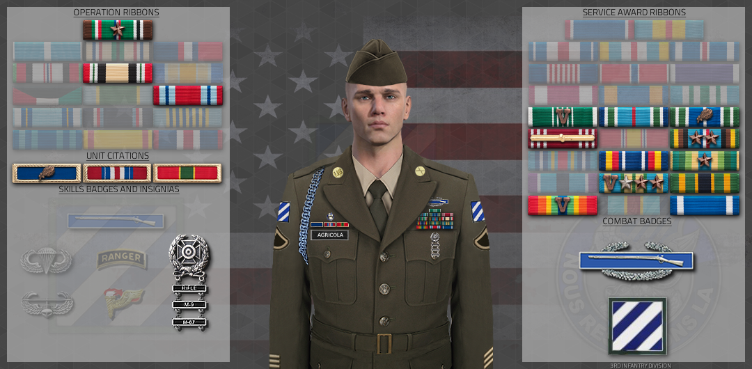 Presidential Unit Citation (PUC) Private First Class Nico Agricola The Secretary of the Army has reposed special trust and confidence in your patriotism, valor, fidelity and professional excellence. In view of these qualities, your demonstrated leadership potential, and dedicated service to the United States Army and the unit, you are, therefore, awarded the Presidential Unit Citation (PUC). Awarded: Jan 5, 2025 Signed: Major John LaFlash |
