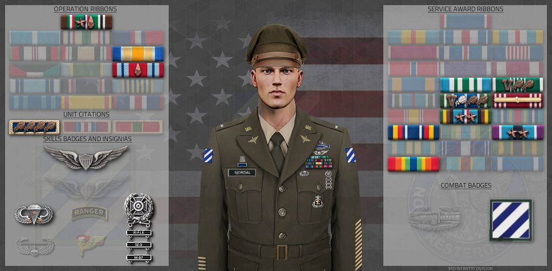 SPC Sjordal while operating as CLS of Alpha Team assisted in the capture of a high ranking enemy officer during an airfield assault. At one point, one of his fellow squadmates stashed the HVT somewhere to continue doing his duty which lead to an attempted escape. At this time, SPC Sjordal pursued and recaptured the HVT without incident. His dedication to his role and betterment of his fellow servicemember brings great credit upon himself, his squad, and the 3rd Infantry Division. His expertise, knowledge, and dedication are in keeping with the highest military traditions and reflect great credit upon himself, First Platoon Widowmakers, Alpha Company Wareagles, and the 3rd Infantry Division.