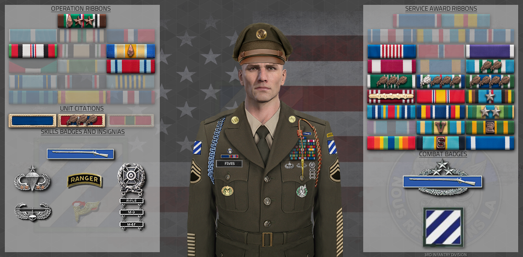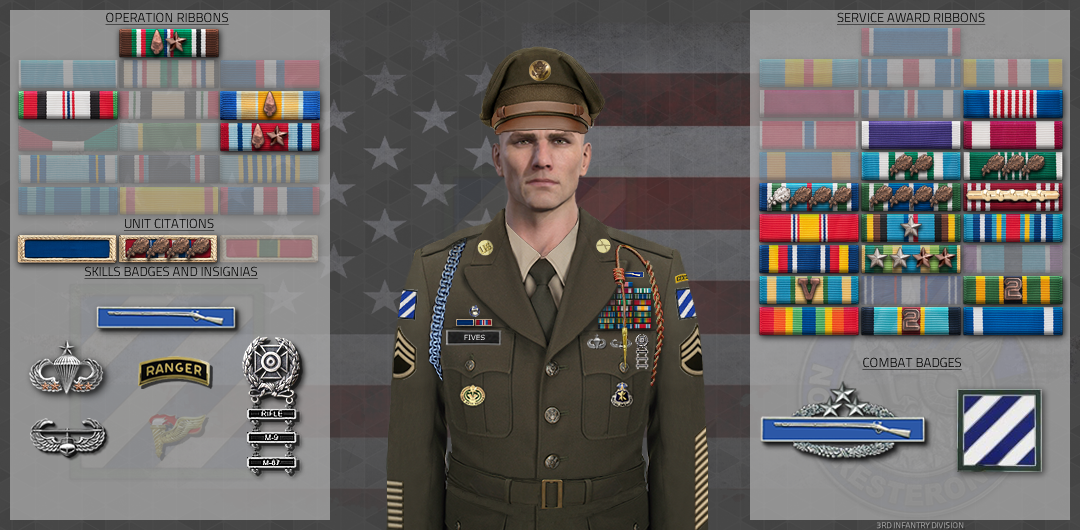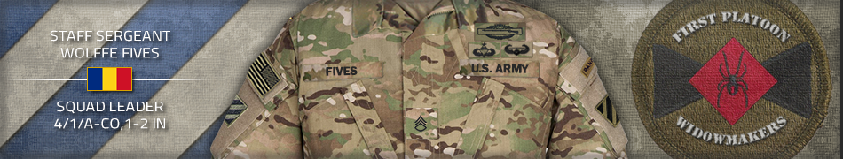 During Mission Sandstone, Staff Sergeant Fives received intel that SPC Mensink has been captured by enemy forces. In a daring attempt, SSG Fives approached with his squad the location where SPC Mensink was held as hostage. His squad suffering casualties and wounded, with RCT Jones and behind him soon followed by PV2 Thompson, SSG Fives, under enemy fire, has breached the enemy compound, starting to clear the courtyard and the rooms of the buildings inside, managing to shoot down 3 enemy insurgents and shoot the one that was using SPC Mensink as protection.