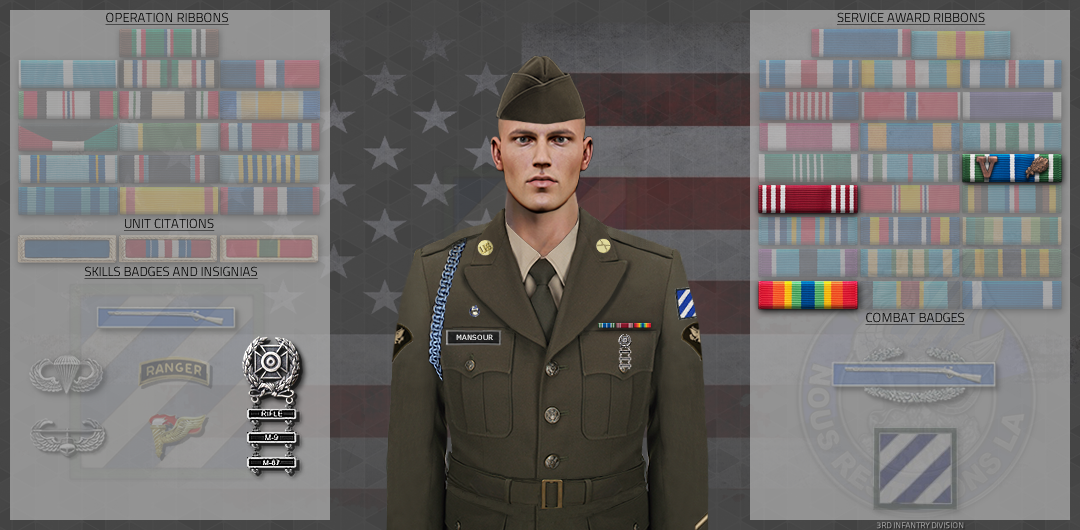 During Mission Scorpion, in the early phases of the push through the town of Marwey, Alpha Team became separated from Bravo Team and was rapidly being encircled by multiple squads of enemy infantry. With two members of Alpha incapacitated and the situation deteriorating, SPC T.Mansour moved under heavy fire to reach the nearest casualty. Exposing himself to enemy rounds from multiple directions, he rendered immediate first aid and successfully revived his teammate while fending off enemy fighters attempting to overrun their position. With no safe route and mounting pressure, SPC T.Mansour fought his way toward Bravo Team to reinforce their defensive line and provide additional aid and firepower. En route, the same casualty was struck and incapacitated a second time. Thinking quickly, SPC T.Mansour dragged his wounded teammate from an exposed position into a nearby building, establishing cover while continuing to engage and repel multiple advancing enemies. Despite the overwhelming odds, he again administered life-saving aid and revived his teammate a second time before leading a decisive push to rejoin Bravo Team. SPC T.Mansour’s courage, composure, and exceptional dedication under fire directly prevented the loss of a fellow soldier and ensured the survival and fighting effectiveness of the entire Scorpion element. His decisive actions and valorous performance under extreme enemy pressure reflect great credit upon himself and the 3rd Infantry Division.