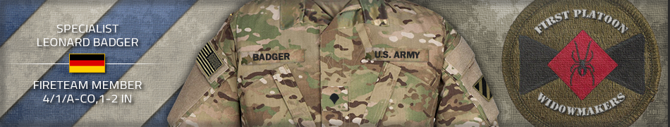 Army Service Ribbon (ASR) medal with Valor "V" Device. Specialist Leonard Badger The Secretary of the Army has reposed special trust and confidence in your patriotism, valor, fidelity and professional excellence. In view of these qualities, your demonstrated leadership potential, and dedicated service to the United States Army and the unit, you are, therefore, awarded the Army Service Ribbon (ASR). Awarded: Sep 27, 2025 Signed: Major John LaFlash