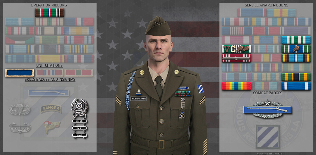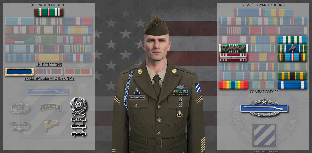While under heavy fire from infantry, Specialist McEnheimer managed to hold his ground, destroying 2 incoming tanks being shot in the process. This prevented the already dire situation of the fire team and squad from becoming even worse. His expertise, knowledge, and dedication are in keeping with the highest military traditions and reflect great credit upon himself, First Platoon Widowmakers, Alpha Company Wareagles, and the 3rd Infantry Division.