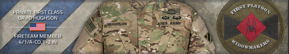 Combat Star (4th Award) Private First Class David Hughson The Secretary of the Army has reposed special trust and confidence in your patriotism, valor, fidelity and professional excellence. In view of these qualities, your demonstrated leadership potential, and dedicated service to the United States Army and the unit, you are, therefore, awarded the Combat Star (4th Award). Awarded: Sep 7, 2025 Signed: Major John LaFlash |