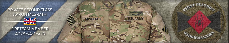 Overseas Service Bar Private Second Class Aaron Mcgrath The Secretary of the Army has reposed special trust and confidence in your patriotism, valor, fidelity and professional excellence. In view of these qualities, your demonstrated leadership potential, and dedicated service to the United States Army and the unit, you are, therefore, awarded the Overseas Service Bar. Awarded: Jan 4, 2026 Signed: Major John LaFlash |