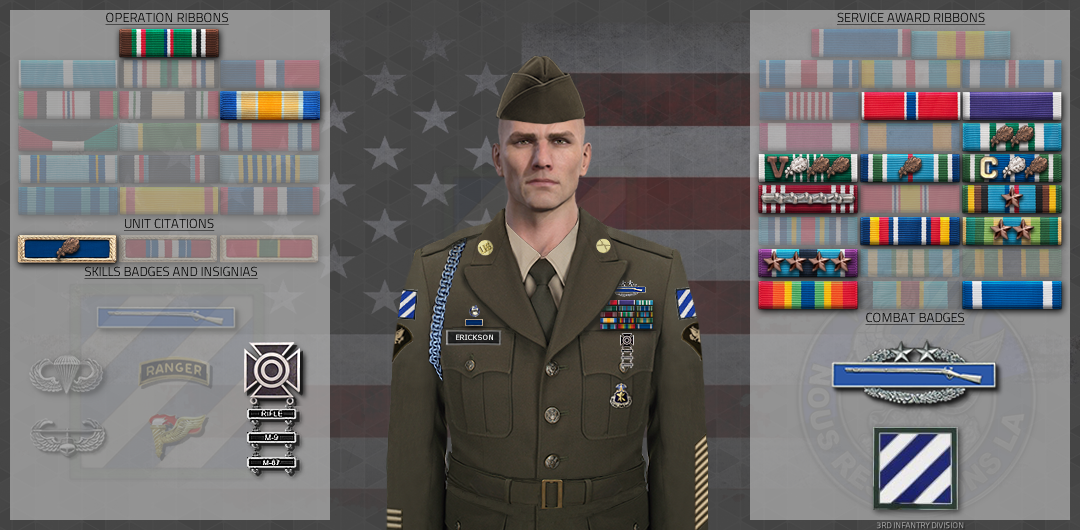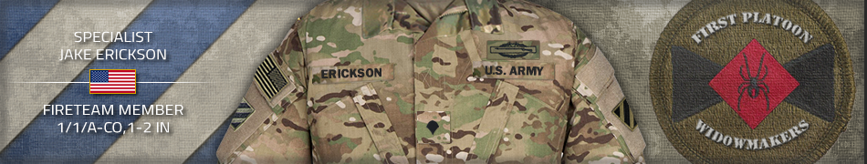 During Operation Egyptian Collapse, SPC Erickson has been a proven reliable soldier with his work as an automatic rifleman within Scorpions. During the campaign there were countless times where First Squad was under immense fire from an overwhelming enemy force and each and every time without hesitation he would be able to suppress and eliminate the enemies that approached. There are also many times where other squads were in Mass Casualty situations where the SPC would volunteer to be a part of the team sent to flex over to assist with the Mass Casualty event, wiping out advancing enemies every time. He also showed dedication to his team assisting wherever needed stepping up as Team Leader countless times when his Team Leader needed to be acting Squad Leader. SPC Erickson’s proficiency with the Squad Automatic Weapon paved the way for 1st Squad advance with suppressing fire assisting with the Squad and platoon’s ability to move in close and engage with the enemy, SPC Erickson continues to show his dedication, reliability and proficiency within his role in his team as well as the squad.