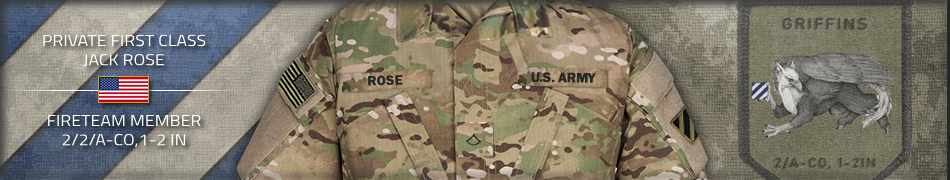 Army Service Ribbon (ASR) medal with Valor "V" Device. Private First Class Jack Rose The Secretary of the Army has reposed special trust and confidence in your patriotism, valor, fidelity and professional excellence. In view of these qualities, your demonstrated leadership potential, and dedicated service to the United States Army and the unit, you are, therefore, awarded the Army Service Ribbon (ASR). Awarded: Feb 28, 2026 Signed: Major John LaFlash |