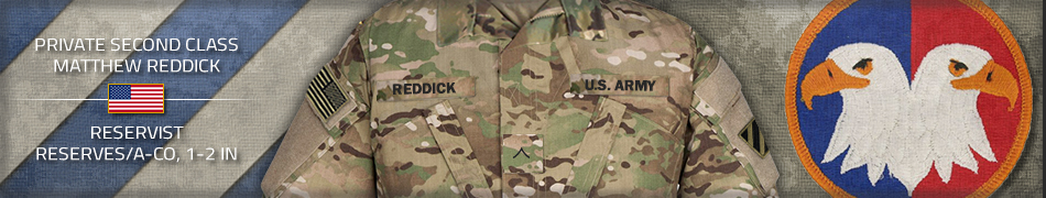 Army Service Ribbon (ASR) Private Second Class Matthew Reddick The Secretary of the Army has reposed special trust and confidence in your patriotism, valor, fidelity and professional excellence. In view of these qualities, your demonstrated leadership potential, and dedicated service to the United States Army and the unit, you are, therefore, awarded the Army Service Ribbon (ASR). Awarded: Mar 21, 2026 Signed: Major John LaFlash