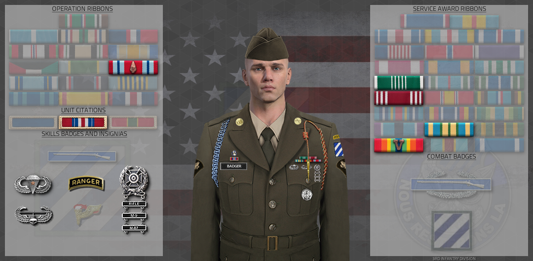 SPC Badger has carried himself with distinction over the past 3 months he has blown through the ranks of the 3rd Infantry Division, showing his talent and dedication to his squad on Saturdays quickly learning the knowledge required to assist with Squad Drills while on Sunday being a key figure of 4th squad. His quick learning and quick action over the deployment has assisted Fourth Squad and Platoon at enhancing mission readiness and effectiveness of the Squad. His skills with the Javelin was paramount in scrapping enemy armor columns and mechanized platoons with over 20 armor kills and dozens M-kills. His actions have directly led to the success of 1st Platoon, assisting in the elimination of 110th Motor BN and 44th Mechanized BN.