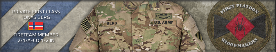 Combat Infantryman Badge (CIB1) Private First Class Jonas Berg The Secretary of the Army has reposed special trust and confidence in your patriotism, valor, fidelity and professional excellence. In view of these qualities, your demonstrated leadership potential, and dedicated service to the United States Army and the unit, you are, therefore, awarded the Combat Infantryman Badge (CIB1). Awarded: Dec 7, 2025 Signed: Major John LaFlash |