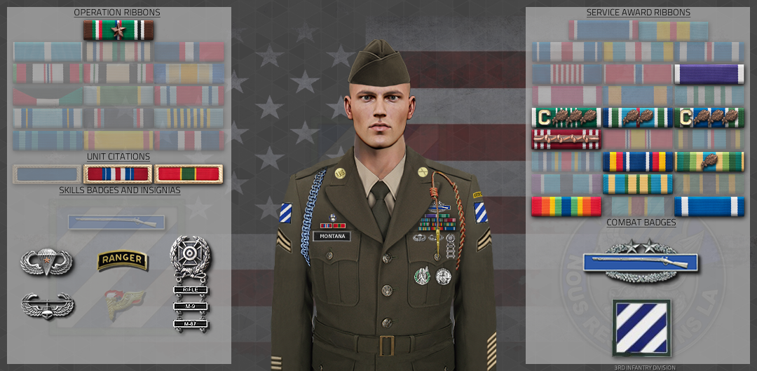 3rd Infantry Division Combat Unit Patch Corporal Buck Montana The Secretary of the Army has reposed special trust and confidence in your patriotism, valor, fidelity and professional excellence. In view of these qualities, your demonstrated leadership potential, and dedicated service to the United States Army and the unit, you are, therefore, awarded the 3rd Infantry Division Combat Unit Patch. Awarded: Jun 8, 2025 Signed: Major John LaFlash |