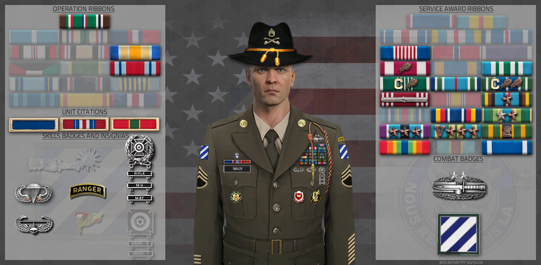 3rd Infantry Division Combat Unit Patch Staff Sergeant George Nagy The Secretary of the Army has reposed special trust and confidence in your patriotism, valor, fidelity and professional excellence. In view of these qualities, your demonstrated leadership potential, and dedicated service to the United States Army and the unit, you are, therefore, awarded the 3rd Infantry Division Combat Unit Patch. Awarded: Jun 8, 2025 Signed: Major John LaFlash |