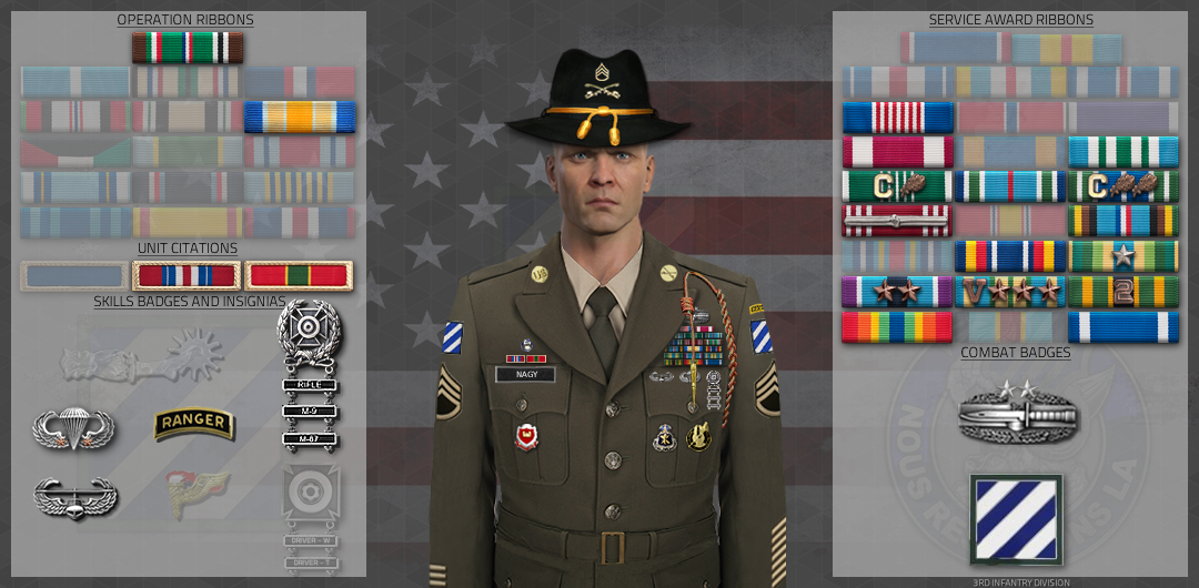 ![]() 3rd Infantry Division Combat Unit Patch Staff Sergeant George Nagy The Secretary of the Army has reposed special trust and confidence in your patriotism, valor, fidelity and professional excellence. In view of these qualities, your demonstrated leadership potential, and dedicated service to the United States Army and the unit, you are, therefore, awarded the 3rd Infantry Division Combat Unit Patch. Awarded: Jun 8, 2025 Signed: Major John LaFlash |