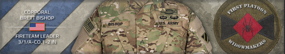 During Mission Spider in Operation Egyptian Collapse, SPC B.Bishop in the temporary Squad Leader position in the stead of SGT A.Bills’ Leave, displayed acts of heroism and courage in the face of a surprise enemy attack on the FOB. Throughout the many waves of the enemy armour platoon, and the many waves of casualties at the front line, SPC B.Bishop never wavered. During the first wave, Third Squad Spartans suffered a mass casualty situation from a flanking enemy force while low on AP rounds in the MGS, destroying the MGS and injuring its crew, and 4 of alpha team members. While sustaining minor injuries, SPC B.Bishop collected the injured soldiers while the enemy forces attempted to break the line, and brought them to a safe temporary CCP location behind Second Squad Ghosts defensive line. During the second wave, and another mass casualty situation of approximately 6 injured soldiers from Second and Third Squads, and 2 members of platoon staff, along with another destroyed MGS, SPC B.Bishop held the front line from sporadic enemy infantry and IFV attacks alongside the remaining uninjured soldiers from Second Squad. During the third wave, and another flank from enemy infantry, SPC B.Bishop both held the line, eliminating approximately 1 squad of enemy infantry, and successfully extracted approximately 4 injured soldiers from both second and third squads to the final regroup point for medical assistance. Never once did SPC B.Bishop hesitate to stay at or return to the front line, nor leave behind a fellow soldier.